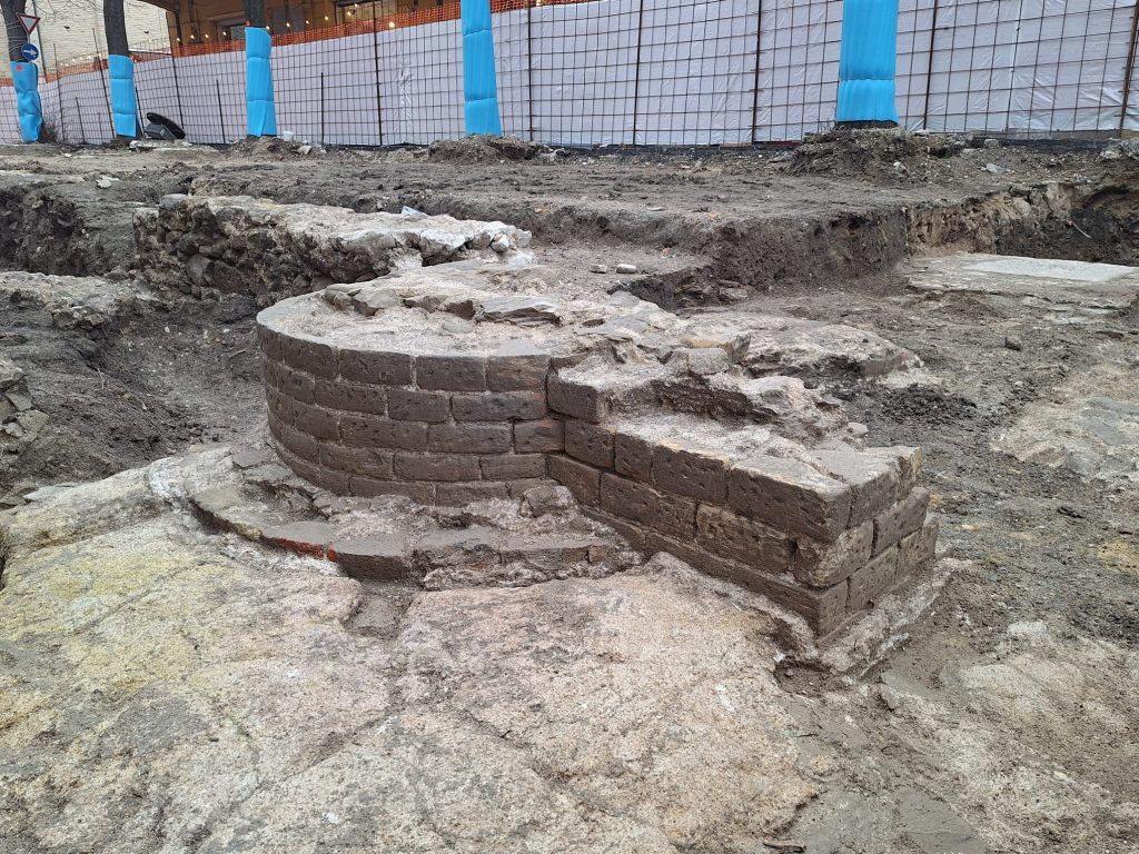 Раскопки на этой территории предпринимались в разные годы. В 2022 году на соседней via Vitruvio были обнаружены остатки стен и мраморного мозаичного пола, что подтверждает, что в древности здесь располагался важный общественный квартал.