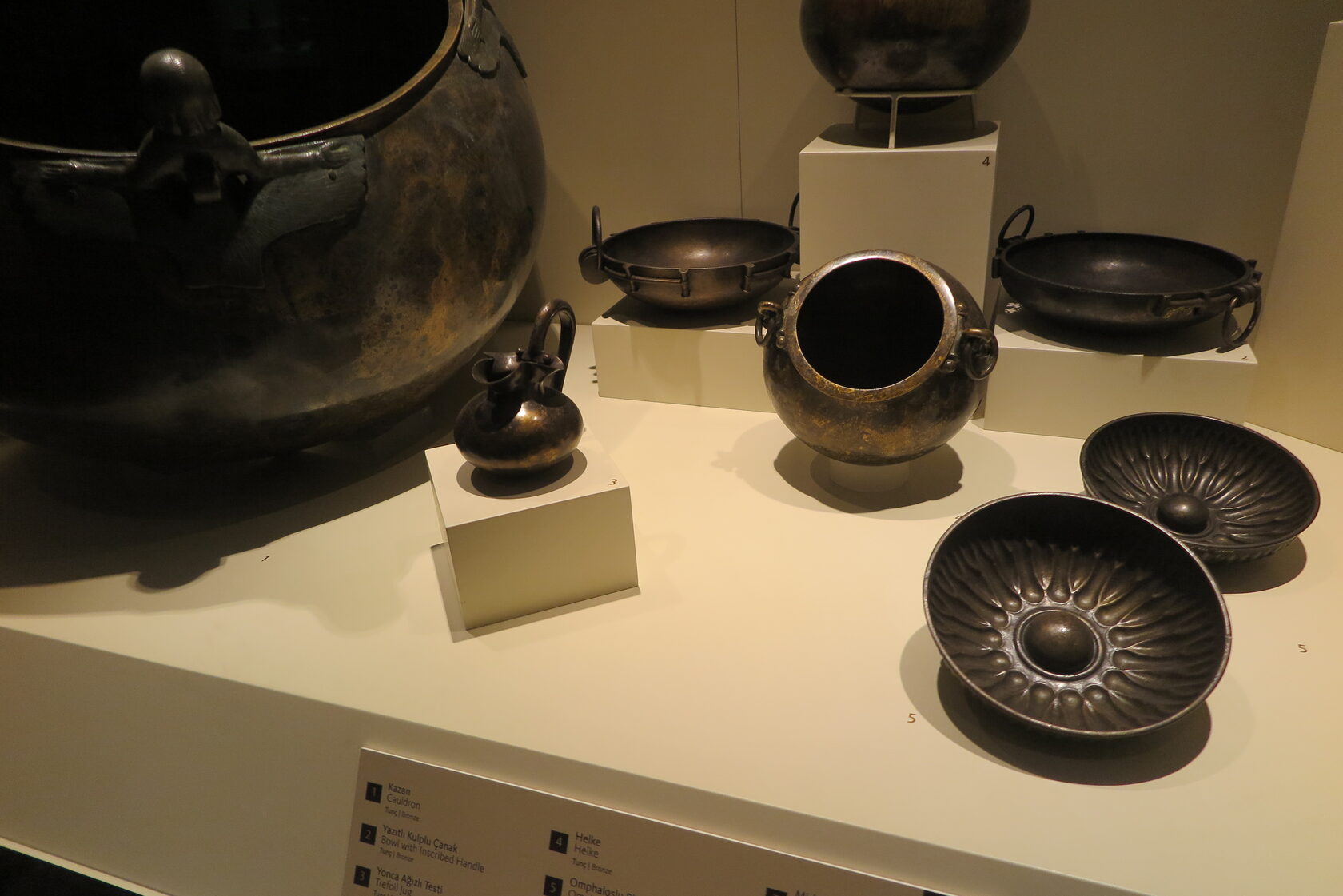 Самая важная часть погребальной утвари — это бронзовый пиршественный набор, состоящий из 88 предметов. Весь этот сервиз использовался во время поминальной трапезы. Громадные котлы служили для приготовления еды и смешивания напитков. Напитки сервировались в маленьких «пузатых» кувшинах, а участники трапезы пили из плоских фиал. Подобные вещи известны и по другим богатым захоронениям Гордиона и свидетельствуют о высоком уровне металлообработки в древней Фригии.