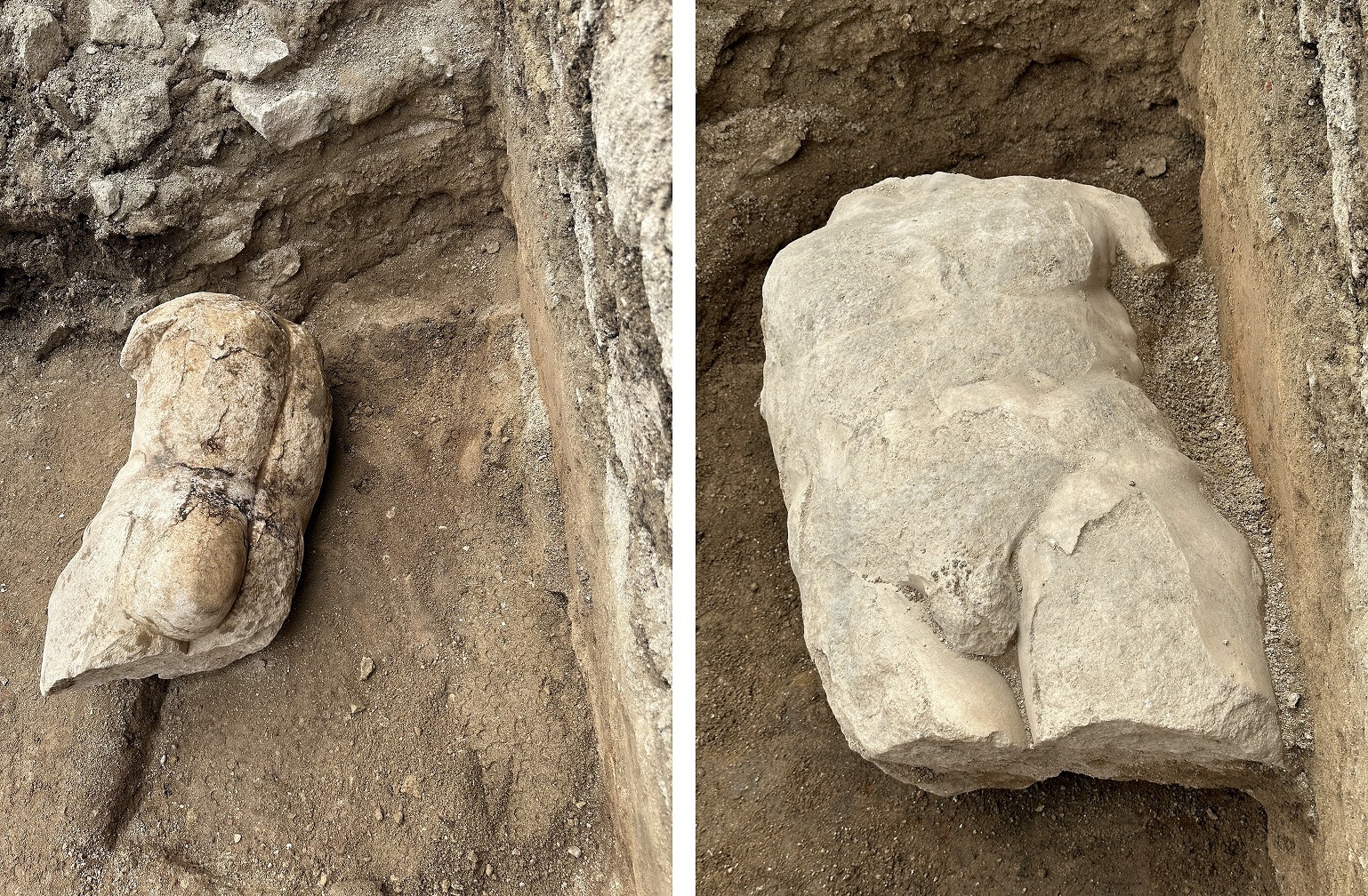 Интересно, что, несмотря на серьезные повреждения торса из Гераклеи, с левой стороны сохранились фрагменты крепления некоего декоративного элемента, который, судя по расположению, мог вполне представлять собой львиную шкуру. Раскрытие храма не завершено, и все еще существует вероятность, что обнаружится голова героя и другие фрагменты статуи. Будем держать вас в курсе событий и поделимся новыми кадрами после расчистки найденных фрагментов.